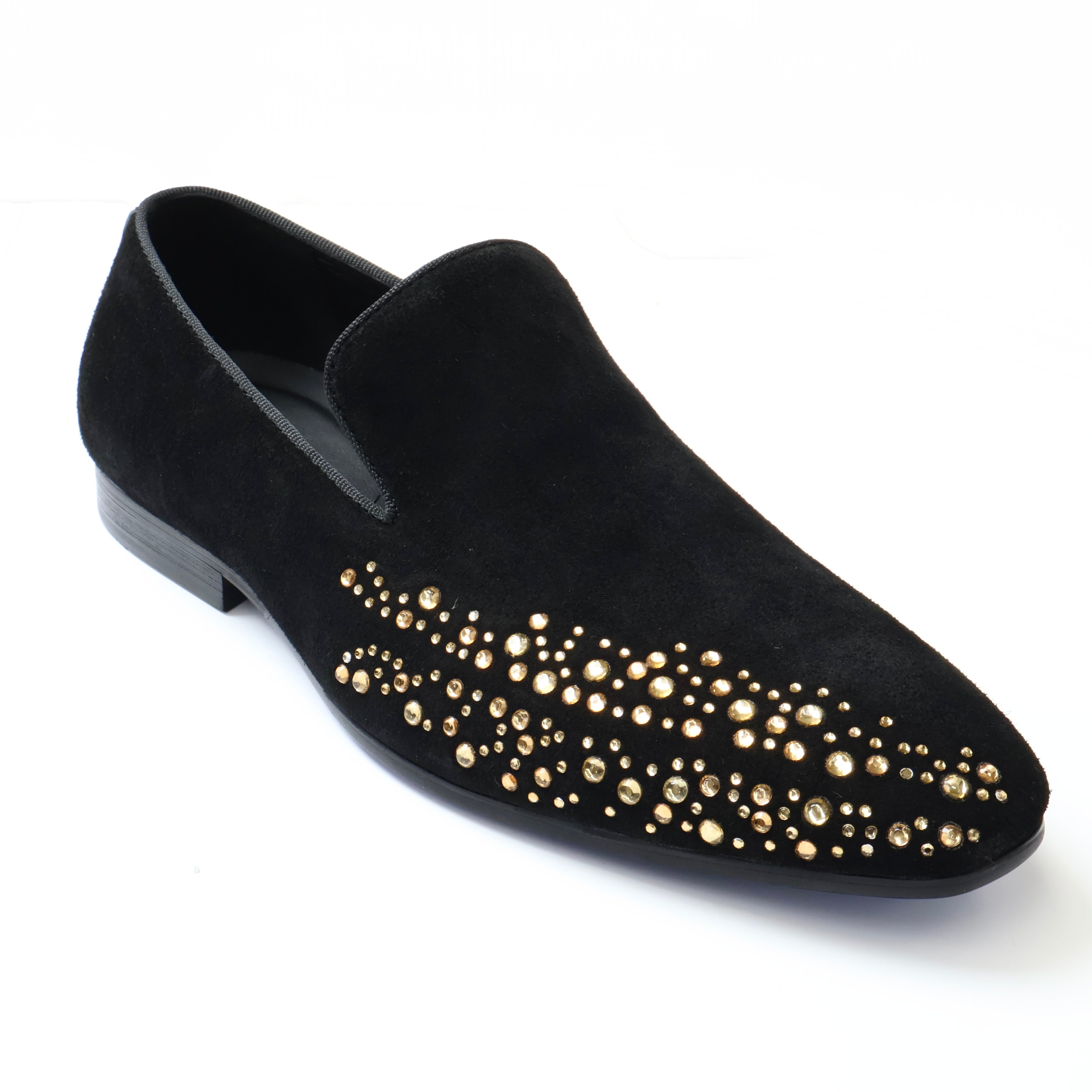 Gold-Toned Detailing: Adorned with an array of shimmering gold studs in dynamic patterns for a bold, eye-catching finish.